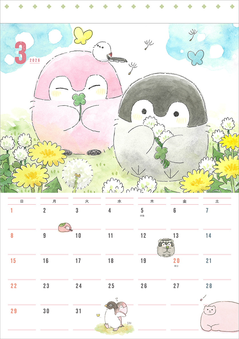 肯定你所有的kokopen和他们的伙伴们色彩丰富的壁挂日历。12张能让人感受到季节变迁的治愈作品。二十四节气的标记。