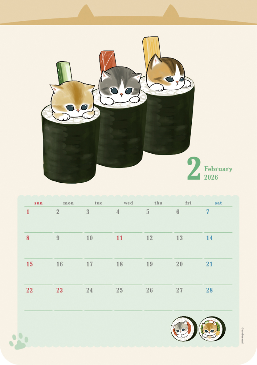 在SNS和LINE贴图上很受欢迎,又可爱又有点超现实的猫咪们“mofusand”的日历。12个月的可爱的样子和天真无邪的样子让人情不自禁地露出了笑容。